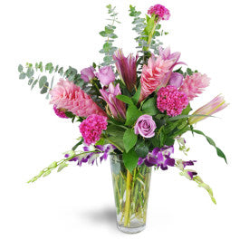 Hopelessly Devoted captures the essence of romance with its stunning blend of fuchsia and purple blooms. This sophisticated arrangement features premium roses, delicate dendrobium orchids, and exotic pink ginger, thoughtfully combined for maximum visual impact. Perfect for expressing deep affection to your mom, best friend, or that special person in your life, this bouquet delivers a message of devotion that words alone cannot convey. When you want to give something truly extraordinary—a gift that commands attention and stirs emotion—this is the arrangement that rises to the occasion. Elegant, modern, and undeniably memorable.